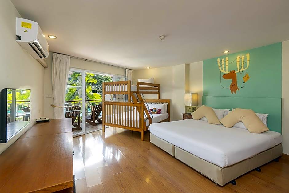 The family room's kitchenette, which has a refrigerator and a microwave, is available for cooking and storing food. The spacious family room offers air conditioning, a tea and coffee maker, a terrace with pool views as well as a private bathroom boasting a bath. The unit has 2 beds.